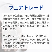 コーヒーの生産者、特に発展途上国の小規模農家や労働者に対して、公正で持続可能な条件を提供するために設計された貿易システムで生産・販売されるコーヒーのことを指します。